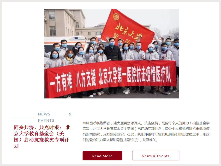 北京大學(xué)教育基金會(huì)(美國(guó))官網(wǎng)發(fā)布抗疫救災(zāi)專項(xiàng)信息