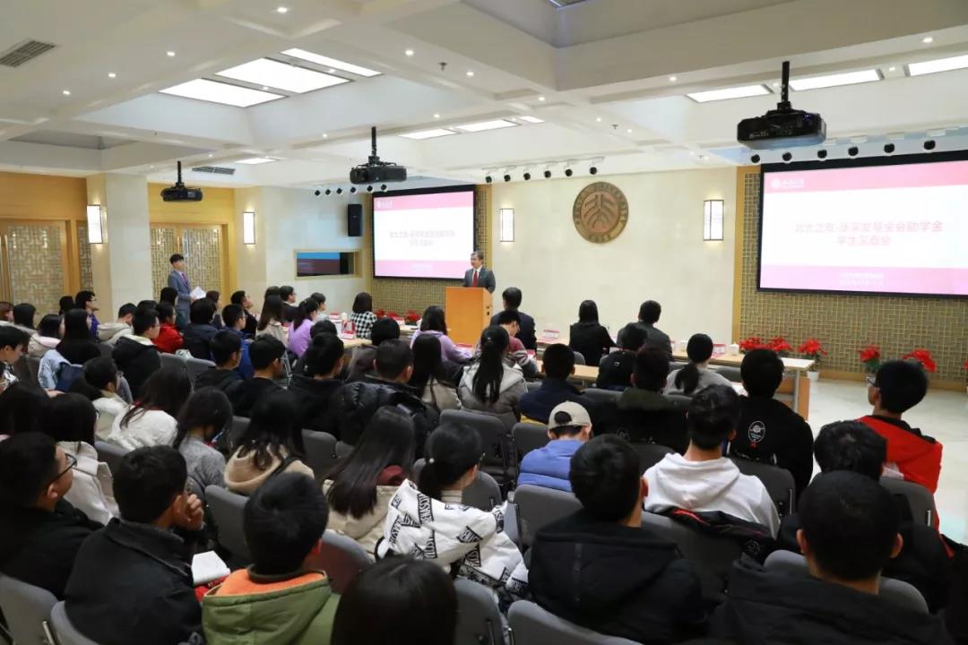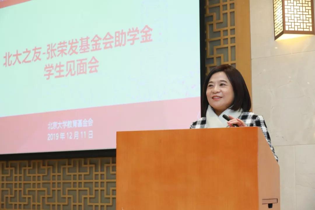 學生見面會上,張榮發(fā)基金會鐘德美執(zhí)行長代表捐贈方致辭。她表示,從2014年開始,張榮發(fā)基金會連續(xù)6年向北京大學捐資支持 “北大之友-張榮發(fā)基金會助學金”, 6年來,捐贈共近600萬元,受助學生超過700人次。她強調“人活著就要積功德、做善事、回饋社會”,要傳承張榮發(fā)先生和長榮集團對青年人的關心,充分履行一個企業(yè)的社會責任和使命。未來張榮發(fā)基金會仍要秉承善心、踐行善舉,期待青年人成為國家和社會發(fā)展的有用之才。