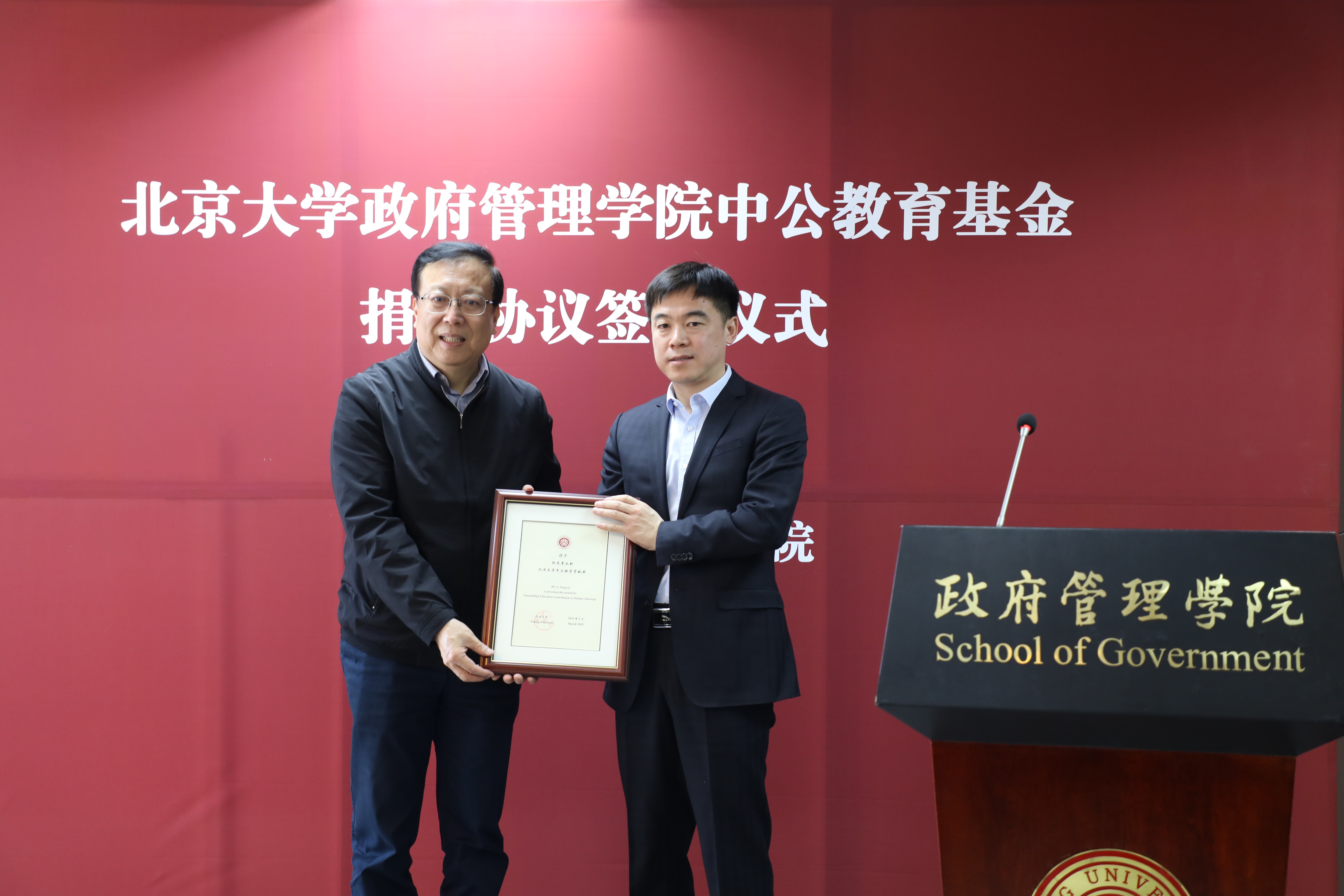 3月7日,北京大學政府管理學院中公教育基金捐贈儀式在廖凱原樓207寧肯教室舉行。中公教育集團向政府管理學院捐資五千萬,用以支持學院的學科建設、教學科研和院友工作,助力學院發(fā)展。
