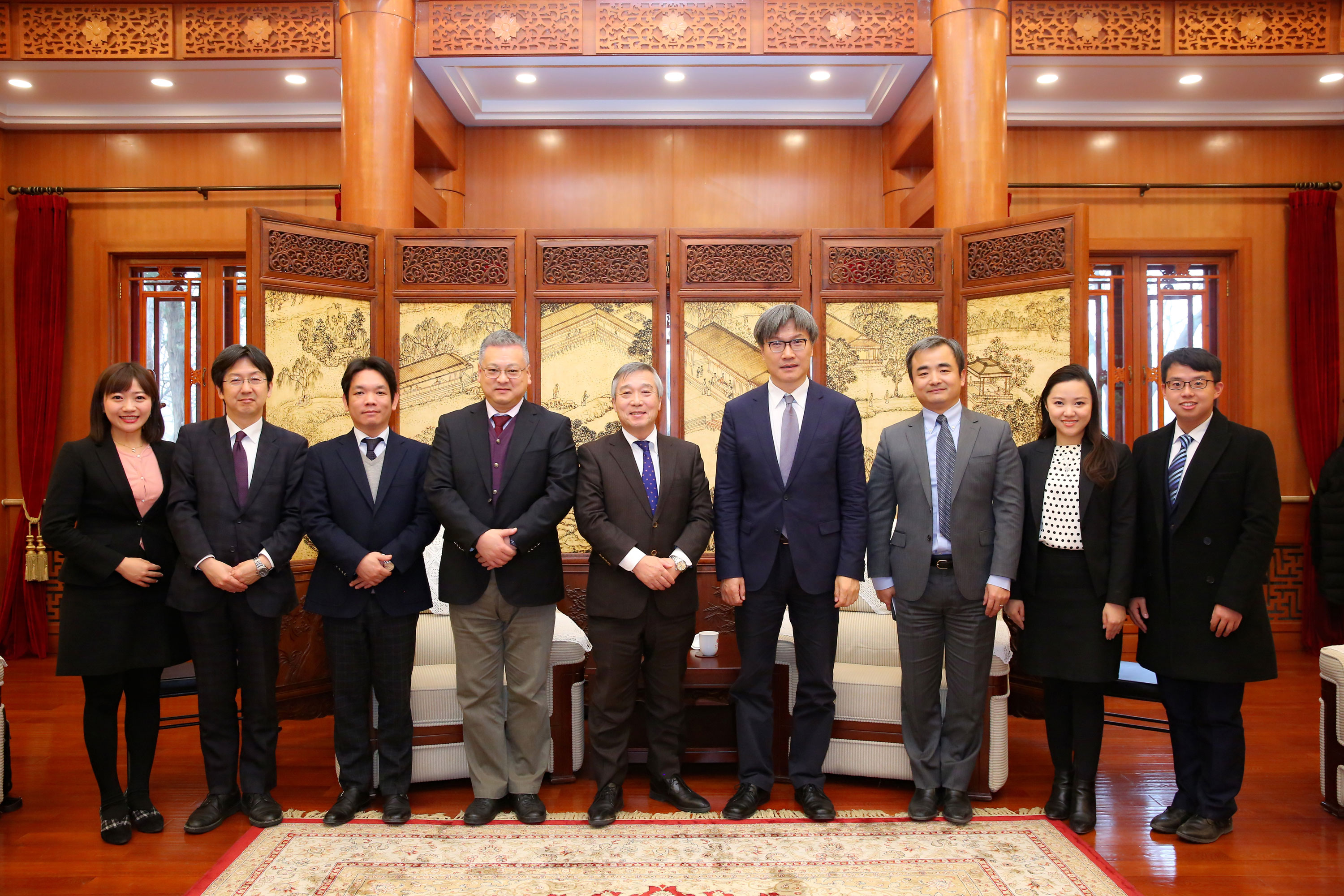 儀式前,北京大學(xué)副校長(zhǎng)、教育基金會(huì)副理事長(zhǎng)王博在臨湖軒中廳會(huì)見了橫尾博先生一行。他代表學(xué)校感謝永旺集團(tuán)一直以來(lái)對(duì)北京大學(xué)人才培養(yǎng)的全方位支持。