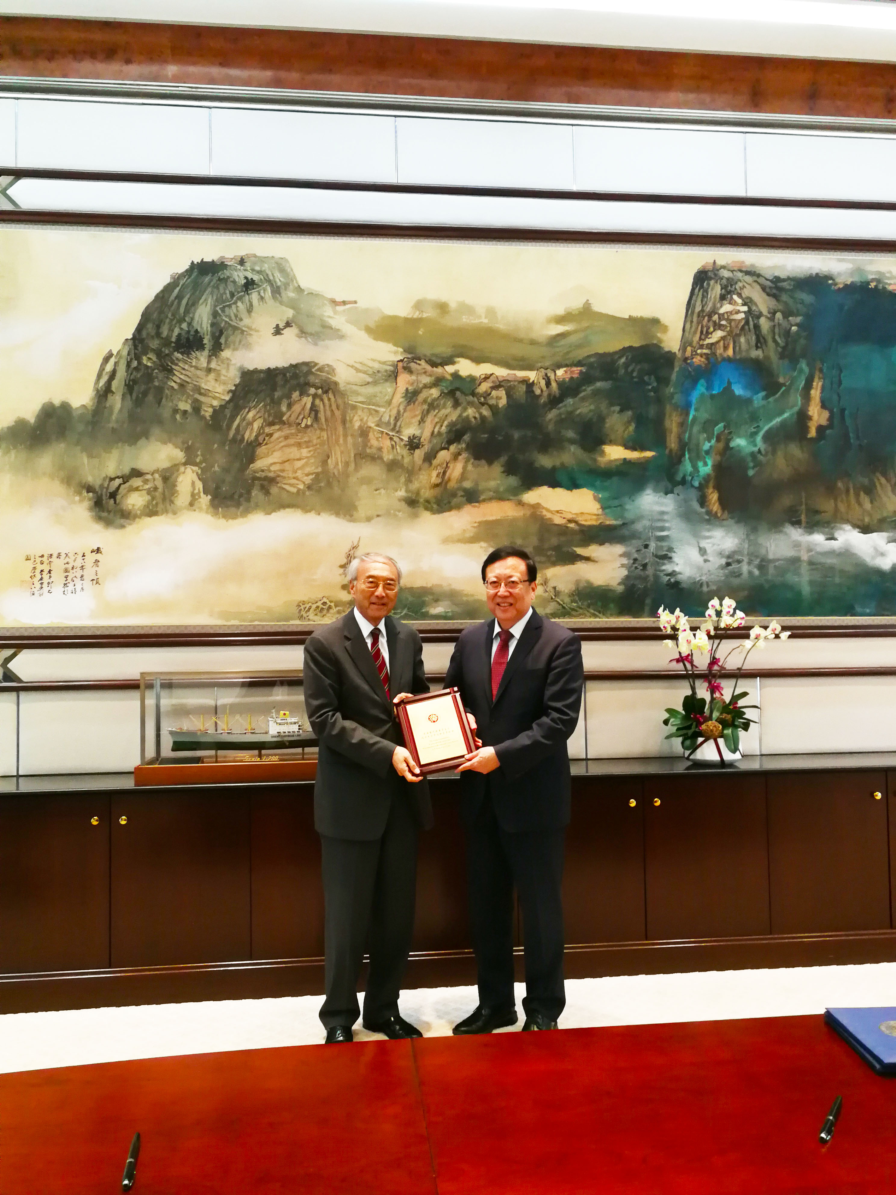 郝平校長(zhǎng)感謝董建華先生和董氏家族、香港董氏慈善基金會(huì)對(duì)北京大學(xué)的支持,并表示一定將國(guó)際戰(zhàn)略研究院建設(shè)好,不辜負(fù)董氏家族對(duì)北京大學(xué)的信任與厚愛(ài)。郝校長(zhǎng)代表學(xué)校向香港董氏慈善基金會(huì)頒發(fā)北京大學(xué)杰出教育貢獻(xiàn)獎(jiǎng)。