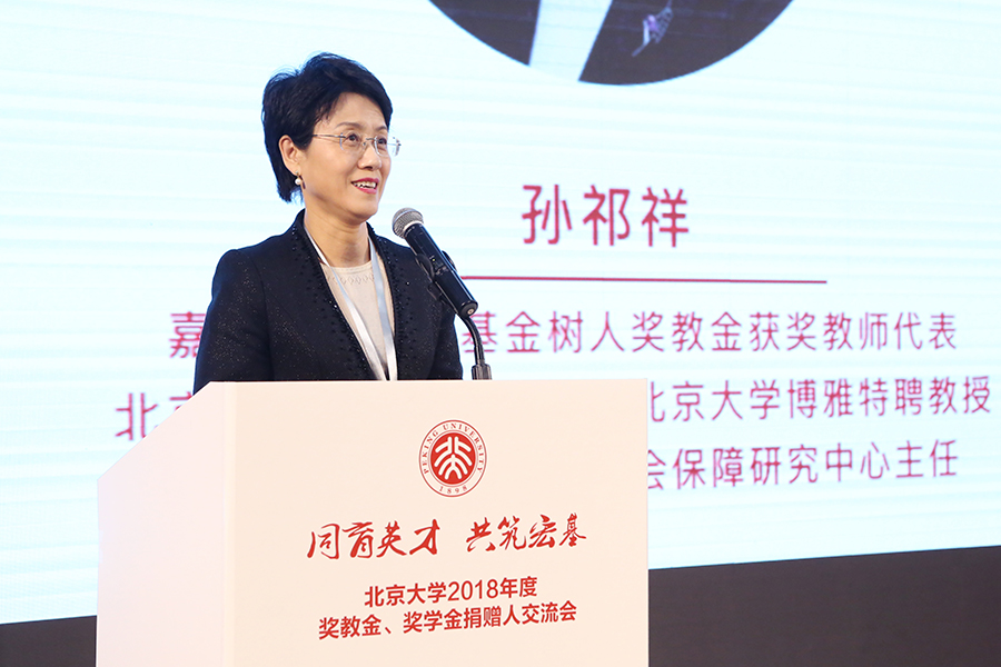 嘉里集團郭氏基金樹人獎教金獲獎者、博雅特聘教授孫祁祥表示,獲獎教師憑借著對事業(yè)的摯愛教書育人,獎教金是北大、捐贈方和學生對我們的肯定,是激勵和鞭策我們更加努力地工作。孫祁祥教授認為,為師者要擔得起責任、扛得起使命、耐得住寂寞、守得住清貧、不辜負學生、對得起良心、胸懷全天下、甘愿做人梯、學高為師、身正為范。她相信,北大能夠在實現(xiàn)中華民族偉大復興、構建人類命運共同體和推動世界發(fā)展的進程中扮演獨一無二的角色,所有支持北大發(fā)展的這些具有情懷與格局的企業(yè)和個人正是在履行他們的政治和社會責任。
