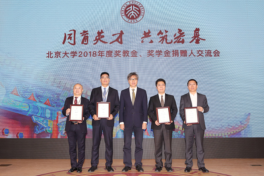 校領導為捐贈方代表頒發(fā)北京大學育人貢獻獎