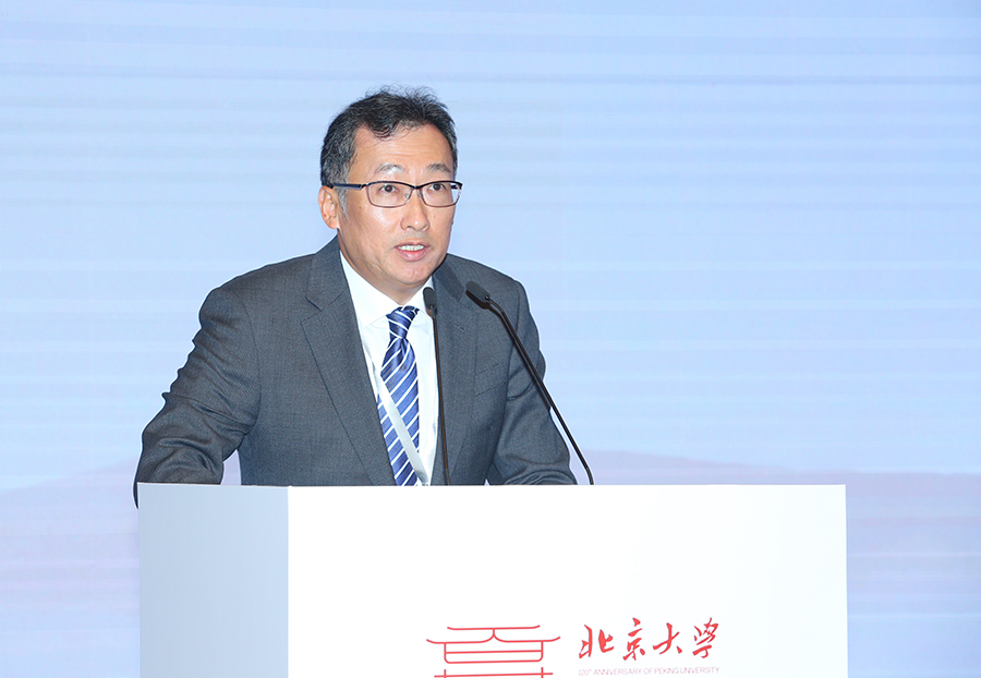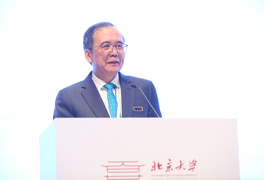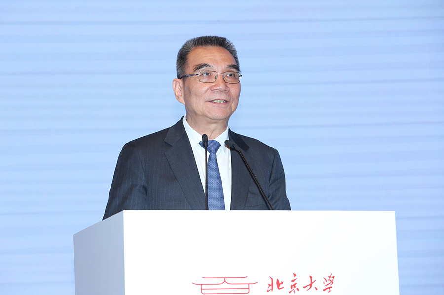 在一曲《燕園情》和一部回顧各界與北大攜手的短片《筑夢(mèng)北大》之后,論壇正式開始。林建華首先致辭。他指出,昨天上午,習(xí)近平總書記來北京大學(xué)考察,并發(fā)表重要講話,是對(duì)北大的巨大鼓舞和激勵(lì),也是對(duì)全國(guó)青年、全國(guó)教育界的巨大鼓舞和激勵(lì)。林建華表示,北大的120年,承載著中華民族奮起復(fù)興的波瀾壯闊的歷史進(jìn)程,承載著一所大學(xué)登高望遠(yuǎn)、矢志一流的理想追求,承載著社會(huì)各界遠(yuǎn)見之士共襄教育、引領(lǐng)未來的拳拳之心。各界有識(shí)之士的支持,代表著社會(huì)、民族和世界對(duì)北大、對(duì)教育和對(duì)未來的期許。相信北大一定能夠早日走在世界一流大學(xué)前列,為中華民族的偉大復(fù)興、為人類文明的進(jìn)步,做出更重要的貢獻(xiàn)。