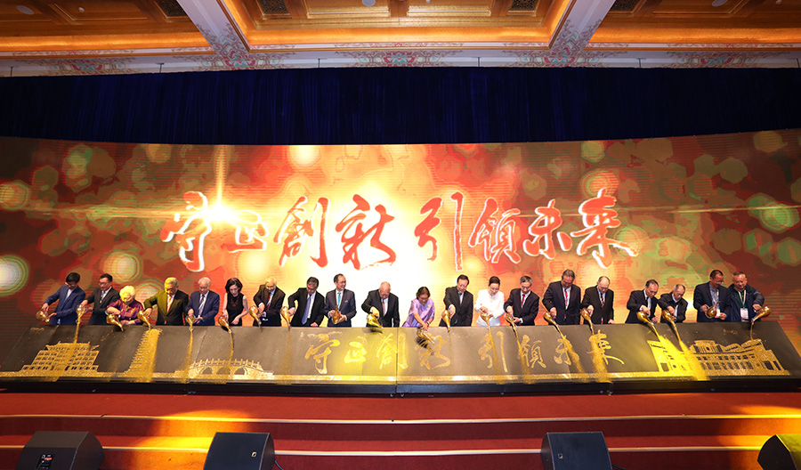 隨后,郝平在致辭中表示,習(xí)近平總書記昨天上午到北京大學(xué)考察,充分肯定了北京大學(xué)120年為國(guó)家和民族做出的突出貢獻(xiàn),和北京大學(xué)創(chuàng)建一流大學(xué)取得的成績(jī)。總書記的重要講話為北京大學(xué)開啟世界一流大學(xué)發(fā)展建設(shè)新征程指明了方向,極大地鼓舞了北京大學(xué)全體師生的士氣。郝平向全場(chǎng)來賓和所有關(guān)愛、支持北大的朋友表示衷心的感謝,并祝愿大家友誼長(zhǎng)存,共同為實(shí)現(xiàn)中華民族偉大復(fù)興的中國(guó)夢(mèng)而努力奮斗。全場(chǎng)嘉賓共同舉杯,祝賀北大120周年華誕,為友誼地久天長(zhǎng)而歡慶。
