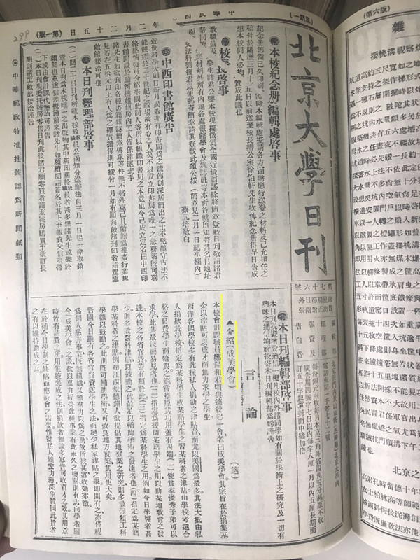 《北京大學(xué)日刊》第七十六號(1918年2月25日)上刊登的成美學(xué)會介紹