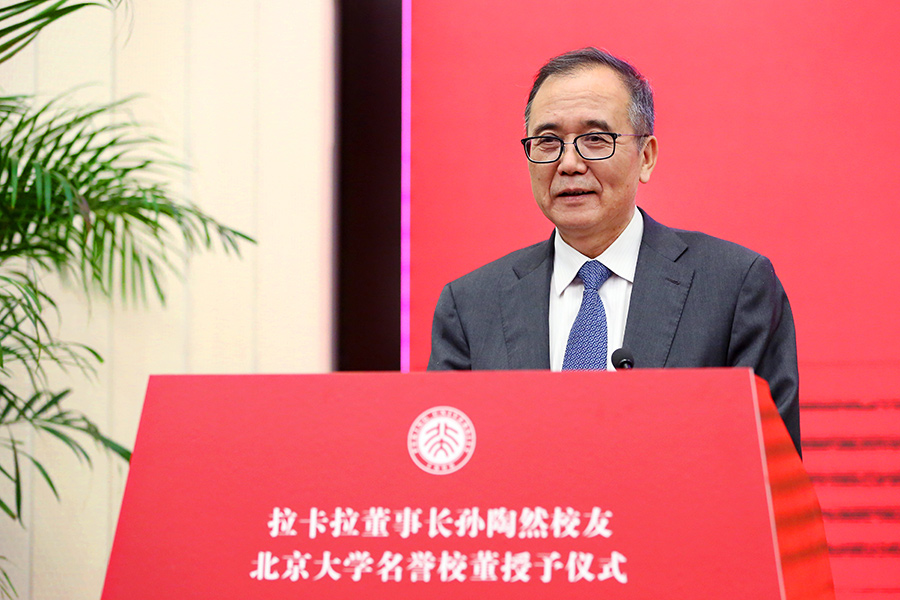 4月13日,孫陶然校友北京大學(xué)名譽(yù)校董授予儀式在北京大學(xué)光華管理學(xué)院阿里巴巴報(bào)告廳舉行。多年來(lái),孫陶然校友為母校的教育事業(yè)貢獻(xiàn)了寶貴力量。他對(duì)母校的支持與厚愛激勵(lì)著更多北大校友回饋母校、投身公益。北京大學(xué)決定聘請(qǐng)孫陶然校友為北京大學(xué)名譽(yù)校董,為母校的發(fā)展建設(shè)獻(xiàn)計(jì)獻(xiàn)策,共同攜手為社會(huì)貢獻(xiàn)力量。