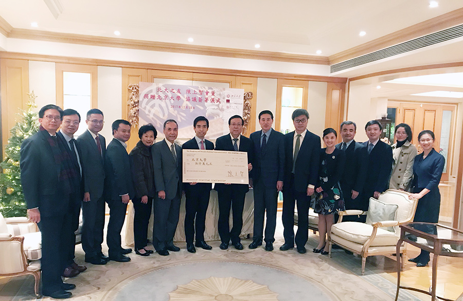 12月18日,香港“北大之友”會董陳上智校友向北京大學捐資5000萬元,設立北京大學明德教育基金。“北大之友”創(chuàng)會會董陳國鉅先生和陳伍玉華女士,“北大之友”創(chuàng)會會董伍嘉偉先生,會董崔勁中先生,北京大學黨委書記、教育基金會理事長郝平,黨委副書記劉玉村,副校長、教育基金會副理事長王博等共同出席。