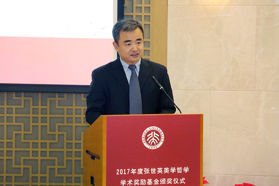 中國哲學(xué)教授張世英先生,中國泛海公益基金會秘書長李建昌,北京大學(xué)黨委書記、教育基金會理事長郝平,哲學(xué)社會科學(xué)資深教授葉朗,教育基金會秘書長李宇寧和師生代表等共同出席頒獎儀式。北京大學(xué)哲學(xué)系黨委書記仰海峰主持儀式。