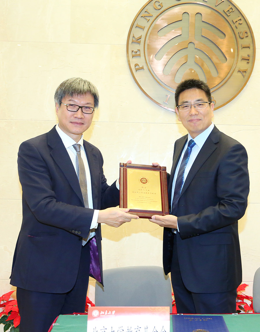 在全場(chǎng)熱烈的掌聲中,劉振飛校友、王博副校長(zhǎng)共同簽署捐贈(zèng)協(xié)議,王博副校長(zhǎng)代表學(xué)校向劉振飛校友頒發(fā)北京大學(xué)杰出教育貢獻(xiàn)獎(jiǎng)。當(dāng)天,劉振飛校友等還參觀了王選紀(jì)念陳列室。(記者:王婷)