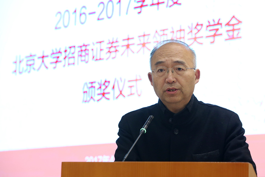 吳志攀常務副校長感謝招商證券的信任和王巖校友對母校的關愛,并表示未來領袖教育基金的設立對于激勵研究生專心鉆研、學以致用,以青年領袖的姿態(tài)關注社會的未來發(fā)展意義非凡。他特別指出,招商證劵諸位高層管理人員親身參與獎學金評審的答辯會,足見其愛才、惜才、育才的殷切之心。吳校長對獲獎學生寄予厚望,希望同學們能始終以“未來領袖”的高標準嚴格要求自己,發(fā)揚北大人“敢為天下先”和“以天下為己任”的光榮傳統(tǒng),為國家和民族的發(fā)展做出北大人的突出貢獻。