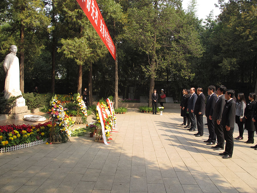 開心今年是李大釗烈士就義90周年, 2017年4月3日,清明節(jié)前夕,北大圖書館黨委、馬克思主義學(xué)院黨委和教育基金會(huì)黨支部共同組織師生黨員代表前往萬安公墓李大釗烈士陵園,開展清明祭奠活動(dòng),深切緬懷偉大的革命先驅(qū)李大釗同志的豐功偉績(jī)。北京大學(xué)教育基金會(huì)理事長(zhǎng)朱善璐參加了活動(dòng)。