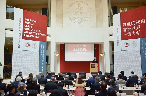 2016年11月4日,第二屆北大-斯坦福論壇暨2016年北京論壇教育分論壇在北京大學斯坦福中心拉開帷幕。本屆北大-斯坦福論壇的主題為“建設(shè)世界一流大學:制度的視角”。在為期兩天的會議中,來自中國、美國、加拿大、澳大利亞、英國、俄羅斯、芬蘭、日本、韓國、菲律賓、巴基斯坦,以及中國香港和澳門等國家和地區(qū)的40余位大學校長和學者、國際組織專家匯聚一堂,共同探討世界一流大學的產(chǎn)生、組織、管理和發(fā)展等重要問題。