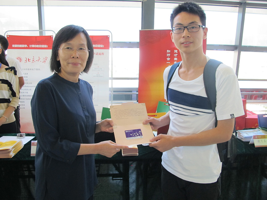 “大師身旁宜聆教,未名湖畔好讀書”。9月3日,北京大學(xué)教育基金會(huì)在2016迎新綠色通道為400余名家庭經(jīng)濟(jì)困難的北大新生發(fā)放愛心讀書卡。2016年,北京大學(xué)共迎來4380名來自全國(guó)各地及數(shù)十個(gè)國(guó)家的本科新生。其中,農(nóng)村學(xué)生共700余名,為近年最多。