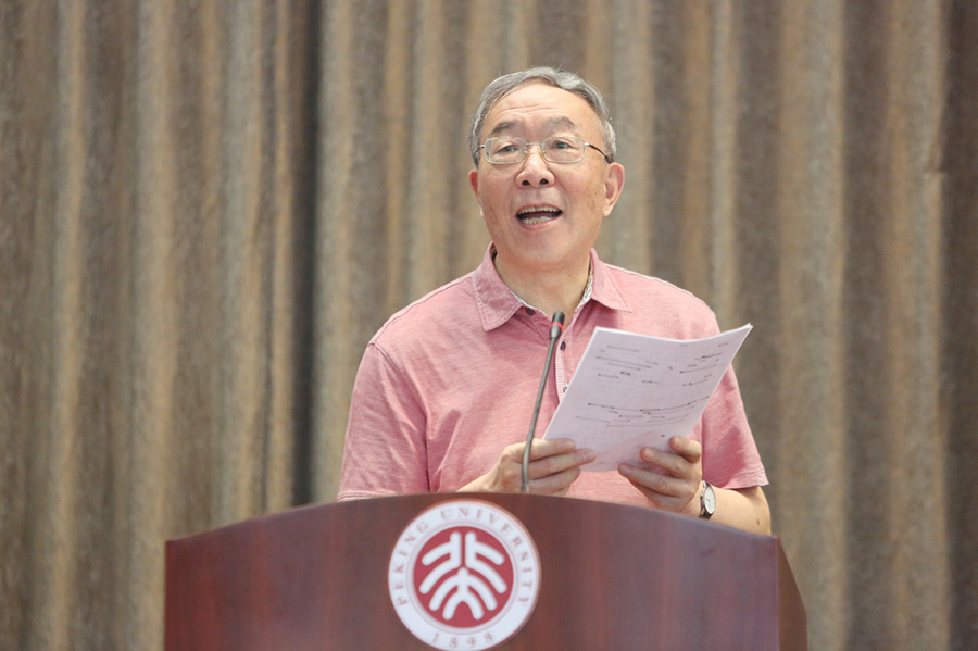 葉朗教授也登臺(tái)講話。他引用習(xí)近平總書(shū)記在文藝工作座談會(huì)中提到的恩格斯名言:“(這)是一個(gè)需要巨人而且產(chǎn)生了巨人——在思維能力、熱情和性格方面,在多才多藝和學(xué)識(shí)淵博方面的巨人的時(shí)代”,認(rèn)為當(dāng)前的時(shí)代呼喚思想、理論和學(xué)術(shù)的高峰,需要培養(yǎng)從專(zhuān)業(yè)知識(shí)技能的遮蔽中解放出來(lái),在精神、性格、胸襟、學(xué)養(yǎng)方面起引領(lǐng)作用的“巨人”。這是北京大學(xué)的重要使命。葉朗教授指出,基金的設(shè)立是對(duì)我們時(shí)代呼喚巨人的呼應(yīng),相信21世紀(jì)的中國(guó)一定會(huì)成為一個(gè)群星燦爛的時(shí)代。
