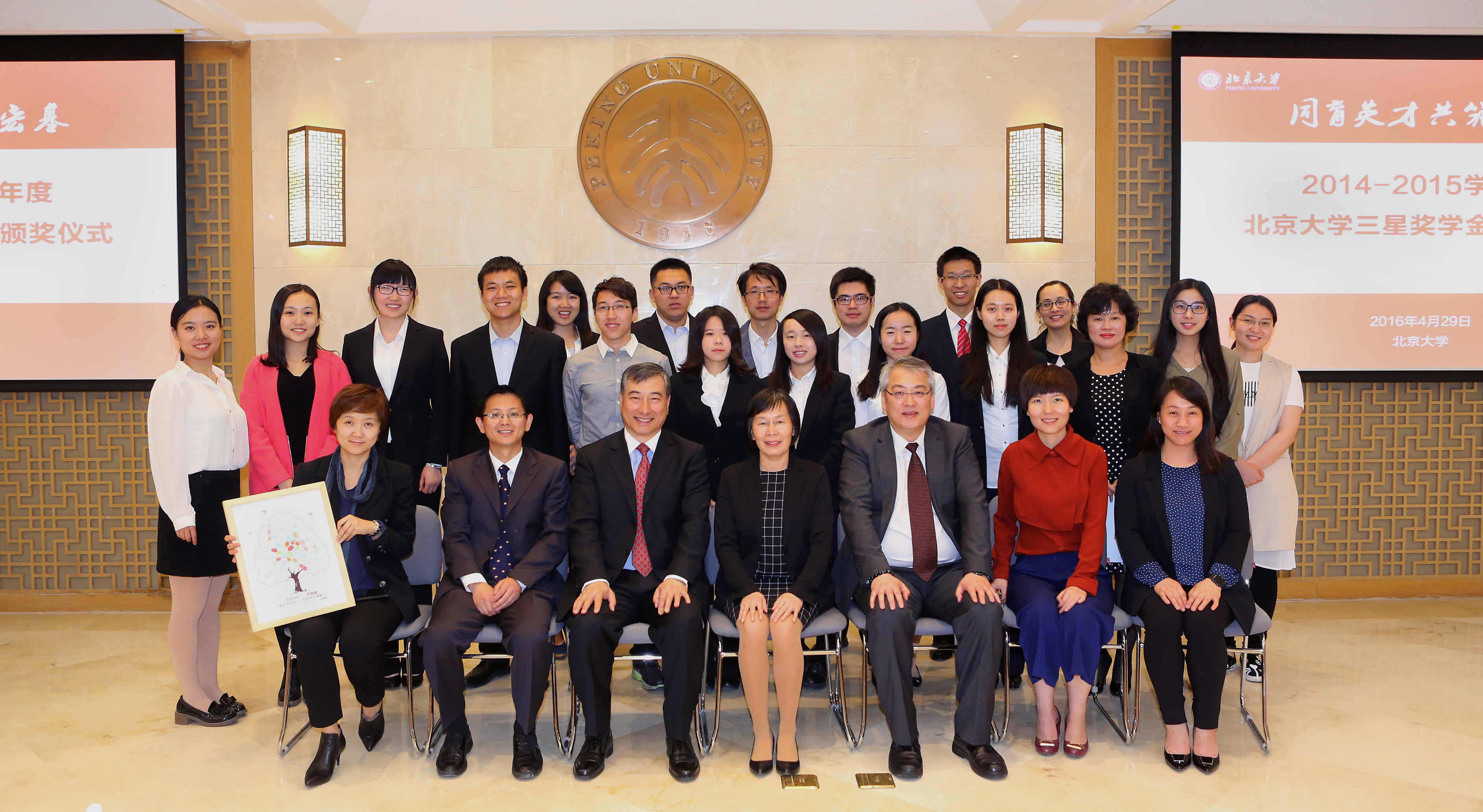 劉德英介紹了2014-2015學(xué)年度北京大學(xué)“三星獎學(xué)金”的評審情況并宣布了獲獎學(xué)生名單。2014-2015學(xué)年度共有17名同學(xué)獲得“三星獎學(xué)金”。獲得獎學(xué)金的同學(xué)不僅學(xué)習(xí)成績優(yōu)異,其他各方面也都表現(xiàn)優(yōu)秀,全部獲得了校級獎勵。