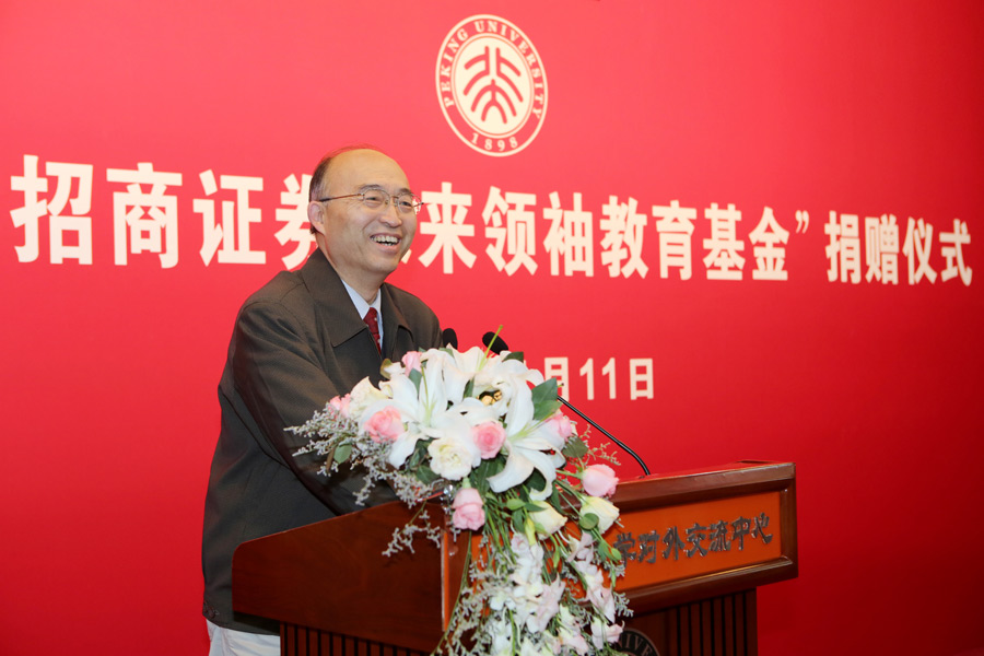 本次活動(dòng)由趙文莉副秘書長(zhǎng)主持。儀式上,吳志攀常務(wù)副校長(zhǎng)代表校方首先衷心感謝招商證券慷慨捐資在北京大學(xué)設(shè)立這項(xiàng)基金,他在致辭中指出這是專門面向研究生的獎(jiǎng)學(xué)基金。為了加大這項(xiàng)基金的力度,學(xué)校也對(duì)這筆捐贈(zèng)進(jìn)行配比。基金的投資收益從學(xué)業(yè)發(fā)展、國(guó)際交流、社會(huì)實(shí)踐、科學(xué)研究等方面為學(xué)生提供全方面成長(zhǎng)支持方案。其意義十分深遠(yuǎn)。