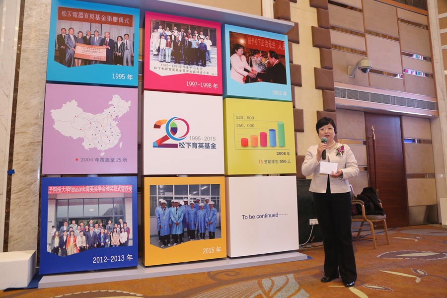 紀念儀式上,王秀云向給予松下育英基金大力支持的所有人士表示衷心感謝。賈伶則在現(xiàn)場通過幾副珍貴的照片,帶領大家回顧松下育英基金20年的發(fā)展歷程。