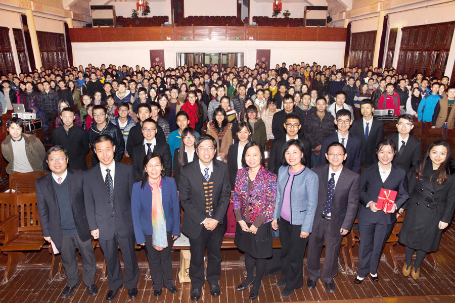 陳振川執(zhí)行長表示,26年來,光華教育基金會一直本著光大中華文化的宗旨,致力于為莘莘學子提供優(yōu)良的學習環(huán)境。隨后,陳振川代表向在場師生們介紹了由潤泰集團總裁尹衍梁先生于2013年投資設立的“唐獎”,并共同觀看了“唐獎”的宣傳視頻,勉勵同學們繼承“唐獎”精神,設定自己的理念與想法,放開視野,在未來取得更加卓越的成就。