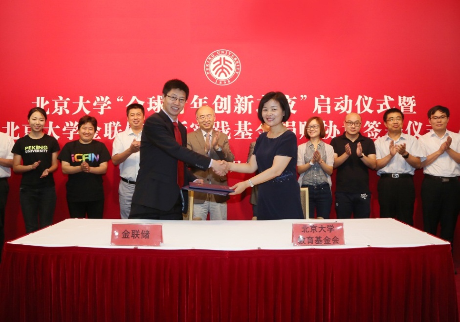 7月17日,北京大學(xué)“全球青年創(chuàng)新之夜”啟動儀式暨北京大學(xué)金聯(lián)儲創(chuàng)新實踐基金捐贈協(xié)議簽署儀式在陳守仁國際研究中心隆重舉行。北京大學(xué)常務(wù)副校長吳志攀,金聯(lián)儲(北京)金融信息服務(wù)有限公司創(chuàng)始人、87級校友王宇宏,校長助理、教育基金會秘書長鄧婭,以及教務(wù)部、國際合作部、校友工作辦公室、學(xué)生就業(yè)指導(dǎo)服務(wù)中心、團委、藝術(shù)學(xué)院、87校友基金等校內(nèi)各職能部門及院系的代表出席儀式。高松副校長主持儀式。