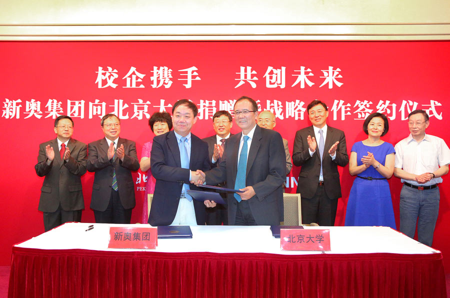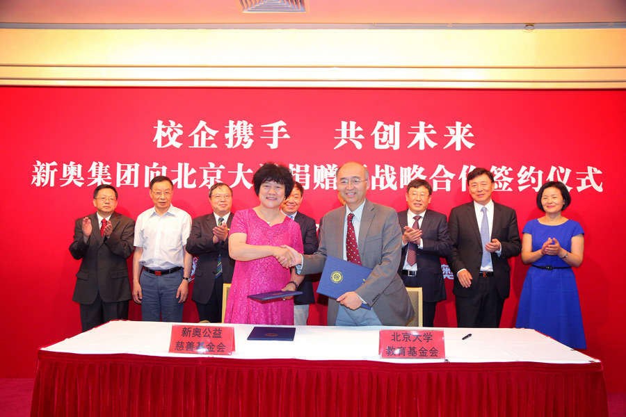 新奧公益慈善基金會韓瑞改理事長與吳志攀常務(wù)副校長共同簽署捐贈協(xié)議