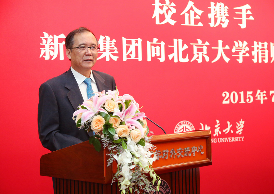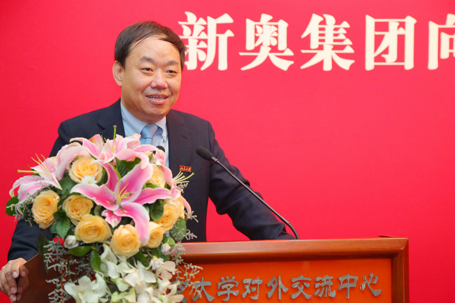 隨后,新奧集團董事局王玉鎖主席致辭。他感謝北大對新奧集團的信任,給予新奧集團回報社會、支持教育的機會。王玉鎖先生表示,北大重建工學(xué)院,是支持產(chǎn)業(yè)轉(zhuǎn)型、建立創(chuàng)新型國家的舉措,這是時代賦予北大的責(zé)任,也是北大對時代的一個交代。因此,新奧集團對能有機會支持北大工學(xué)院的發(fā)展,支持北大擔(dān)當(dāng)起國家在這個時期的責(zé)任感到非常榮幸。