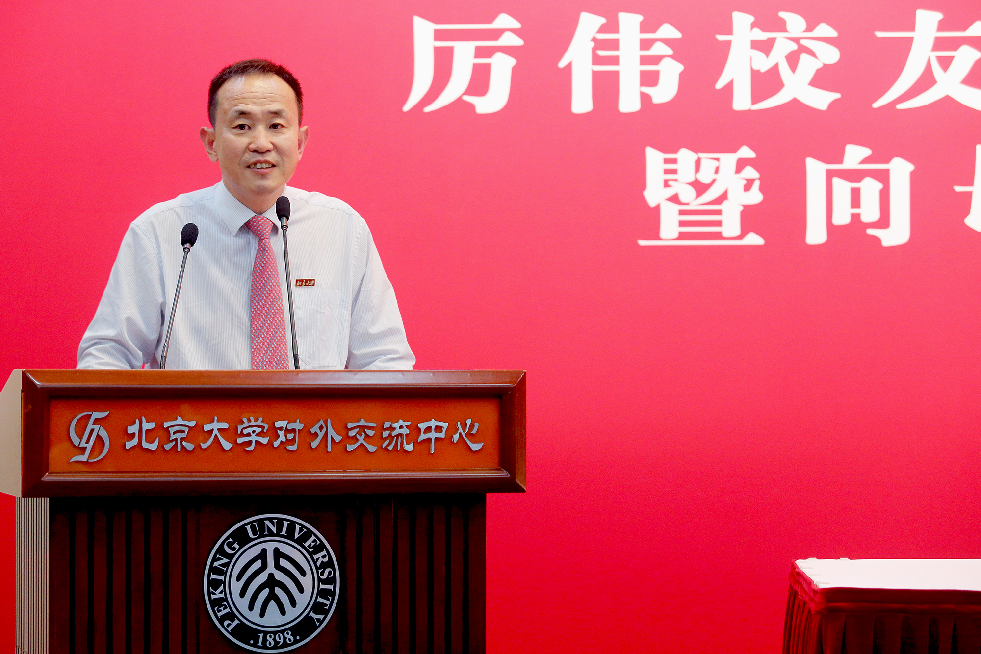 林建華校長首先致辭。他回顧了厲偉校友在燕園的成長歷程,并感謝厲偉校友在北大化學創(chuàng)建105年之際對學院的大力支持。林校長高度評價了厲偉校友在業(yè)界的卓越成就及對母校建設的支持,對他所體現出來的北大人“敢為天下先”的精神品質表示贊賞。他希望能有更多心懷母校的北大人參與到學校的發(fā)展中,共同把北大——我們的精神家園建設的更加美好。