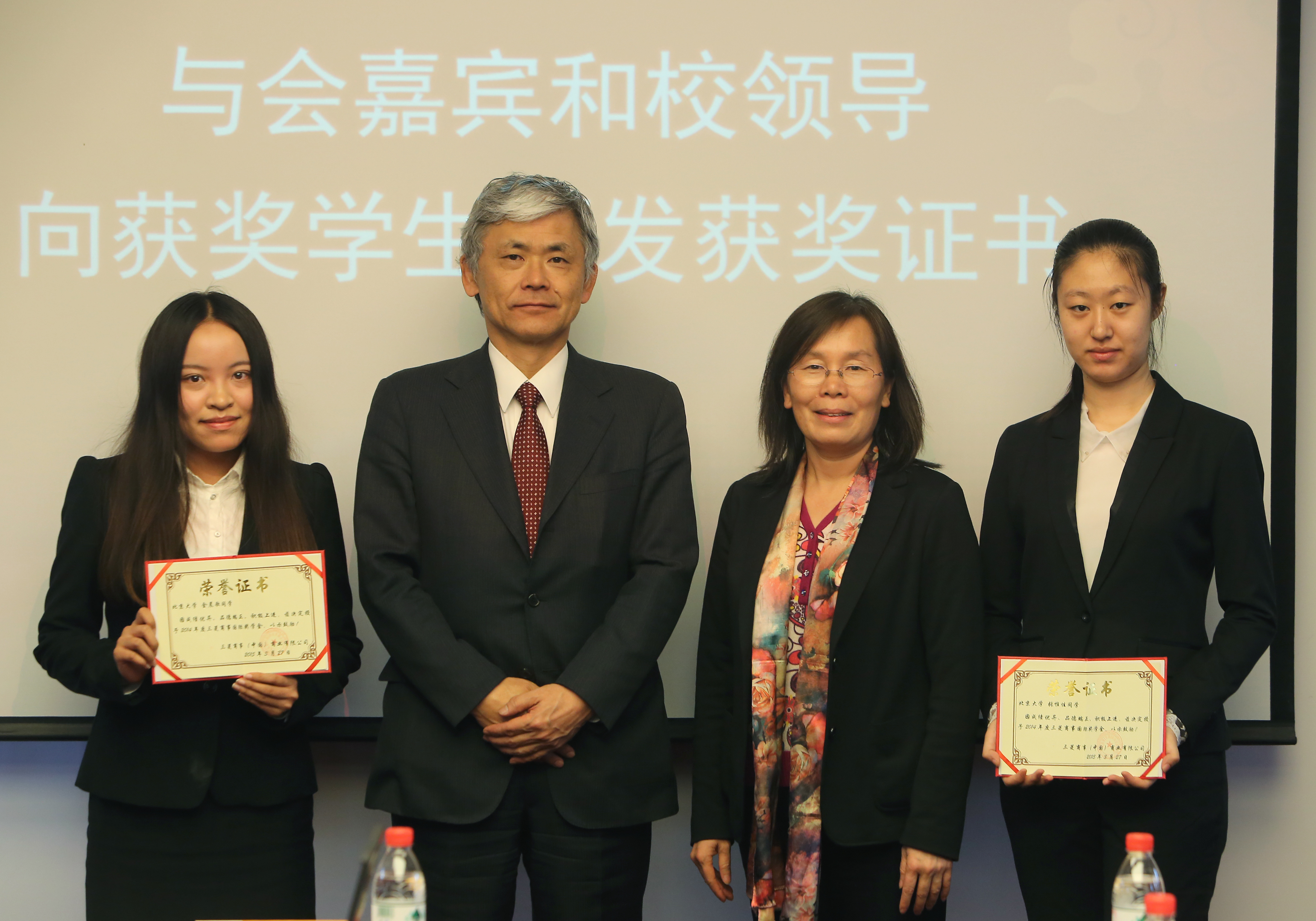 巖城宏斗司先生和葉靜漪副書記共同為獲獎(jiǎng)學(xué)生頒發(fā)證書