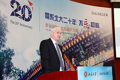 2014年,北京大學(xué)第一個(gè)向每位獲獎(jiǎng)同學(xué)連續(xù)資助四年的獎(jiǎng)學(xué)金——奔馳獎(jiǎng)助學(xué)金舉行了“情系北大20年,不忘初心”的慶典,戴姆勒股份公司董事、戴姆勒大中華區(qū)投資有限公司董事長(zhǎng)兼首席執(zhí)行官唐仕凱(Hubertus Troska)先生親手遞交了擴(kuò)大獎(jiǎng)助額度的捐贈(zèng)支票;