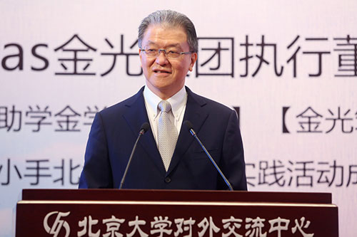 11月6日,印尼金光集團執(zhí)行董事黃榮年先生攜家人一行訪問北京大學,出席北京大學2014年黃奕聰伉儷獎助學金頒獎典禮暨“金光筑夢”基金簽約儀式并發(fā)表演講。北京大學黨委書記朱善璐、副書記葉靜漪、校長助理、教育基金會秘書長鄧婭等學校領導和師生代表共同參加典禮。