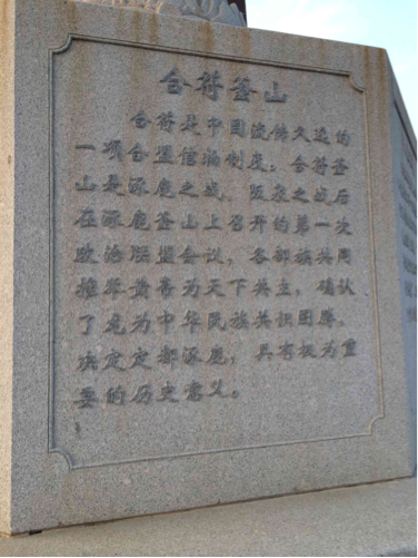 黃帝城內(nèi)中華合符壇的石碑上記載著現(xiàn)代中華文化共同體于軒轅元年(4711年前)的建立。
