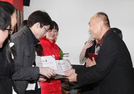 捐贈人廖凱原先生向獲得廖凱原獎學(xué)金的同學(xué)頒獎