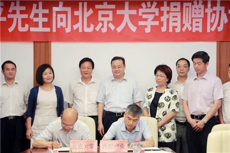 王恩哥校長(zhǎng)和李西平董事長(zhǎng)簽署捐贈(zèng)協(xié)議