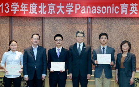 2014年4月28日下午, 2012至2013學(xué)年度北京大學(xué)松下育英獎(jiǎng)學(xué)金頒獎(jiǎng)儀式暨獲獎(jiǎng)學(xué)生座談會(huì)在英杰交流中心第四會(huì)議室舉行。松下電器產(chǎn)業(yè)株式會(huì)社中國(guó)?北東亞地區(qū)總代表大澤英俊、松下電器(中國(guó))有限公司公共關(guān)系部部長(zhǎng)徐纓、松下電器(中國(guó))有限公司公共關(guān)系部社會(huì)貢獻(xiàn)課課長(zhǎng)王愛(ài)強(qiáng)、中國(guó)友好和平發(fā)展基金會(huì)秘書(shū)長(zhǎng)沈昕、中國(guó)友好和平發(fā)展基金會(huì)項(xiàng)目部經(jīng)理董思嘉、北京大學(xué)黨委副書(shū)記葉靜漪、北京大學(xué)教育基金會(huì)副秘書(shū)長(zhǎng)趙文莉、北京大學(xué)學(xué)生工作部副部長(zhǎng)劉德英出席頒獎(jiǎng)儀式。儀式由北京大學(xué)教育基金會(huì)副秘書(shū)長(zhǎng)趙文莉主持。