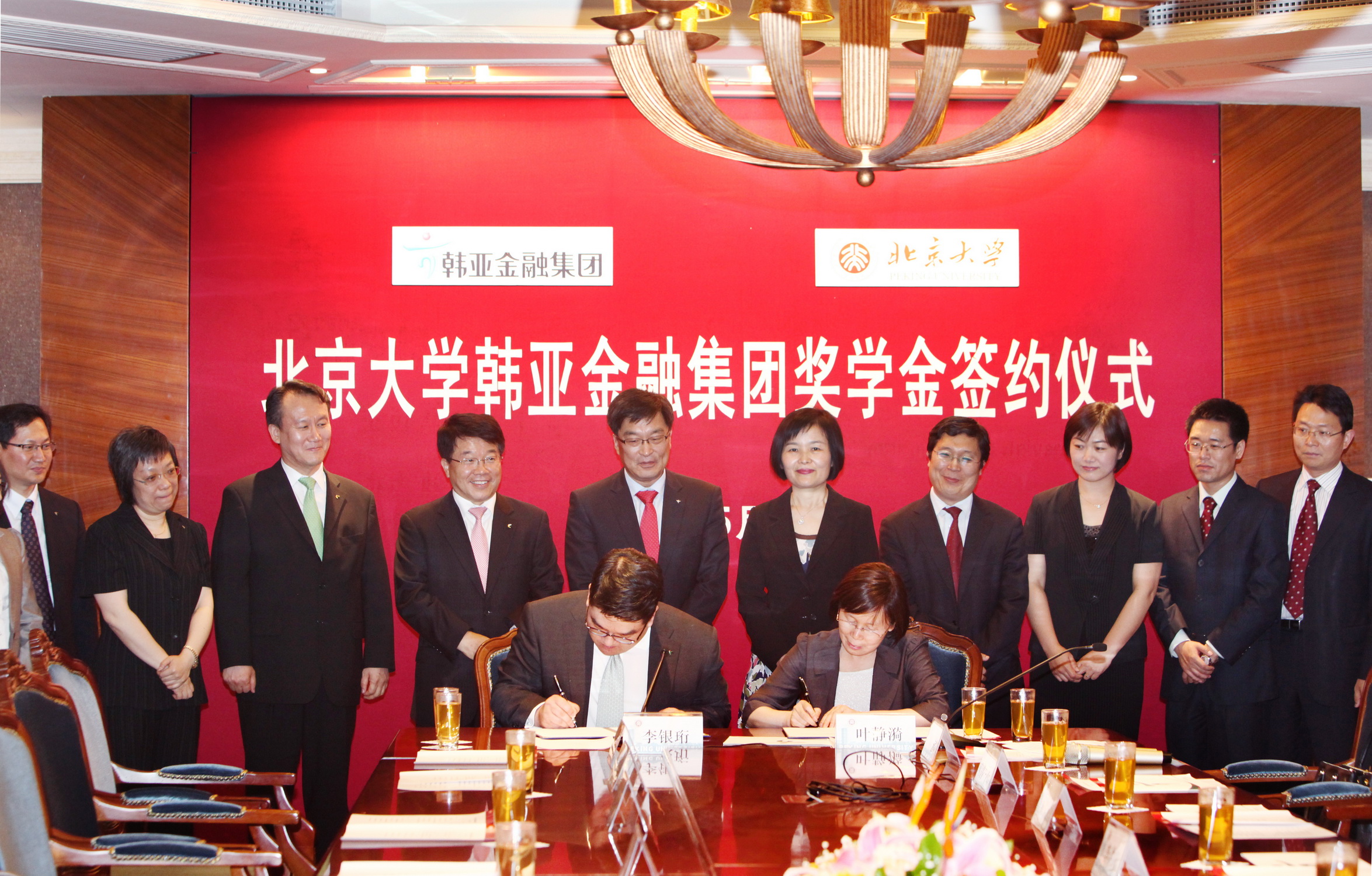 韓亞金融集團是韓國第四大金融集團,在全球擁有眾多分支機構和營業(yè)網(wǎng)點,連續(xù)八年在韓國被評為最佳私人銀行。此次韓亞金融集團捐贈100萬元在北京大學設立獎學金,重點獎勵來自經(jīng)濟學院、法學院、外國語學院、國際關系學院、光華管理學院的優(yōu)秀學子。