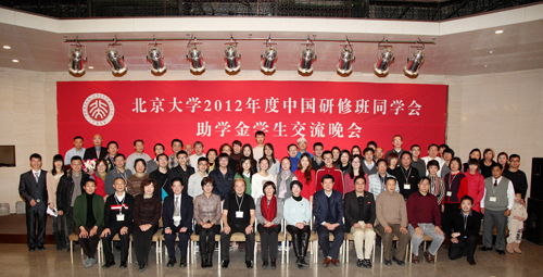 12月8日晚,北京大學(xué)2012年度中國(guó)研修班同學(xué)會(huì)助學(xué)金學(xué)生交流晚會(huì)在北京大學(xué)正大國(guó)際中心弘雅廳舉行。助學(xué)金捐贈(zèng)方嘉賓中國(guó)研修班吳家榮會(huì)長(zhǎng)、陳少霞前會(huì)長(zhǎng)、蘇永安前會(huì)長(zhǎng)、麥貫之前會(huì)長(zhǎng)、黃勵(lì)騰前會(huì)長(zhǎng)攜四十余名學(xué)員專程從香港前來與受助學(xué)子進(jìn)行交流。北京大學(xué)黨委副書記葉靜漪出席了晚會(huì),學(xué)生資助中心主任楊愛民、教育基金會(huì)副秘書長(zhǎng)李榕、以及負(fù)責(zé)北京大學(xué)中國(guó)研修班同學(xué)會(huì)項(xiàng)目的對(duì)外交流中心主任陳振亞等老師一起出席晚會(huì)。