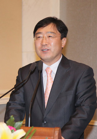 大中華區(qū)三星集團(tuán)人力資源副總裁尹盛熙致辭 尹盛熙副總裁為活動致辭。他介紹了集團(tuán)在中國的發(fā)展業(yè)績和慈善活動,并鼓勵北大學(xué)子在未來世界的發(fā)展變化中發(fā)揮積極作用。