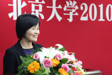 查晶首先為大家介紹了2011年度永旺獎學金的評審情況。本年度北京大學共評出56名永旺獎學金獲得者,分別來自數(shù)學科學學院、物理學院、心理學系、中國語言文學系、國際關(guān)系學院、經(jīng)濟學院、光華管理學院、法學院、社會學系、藝術(shù)學系、信息科學技術(shù)學院、教育學院、城市與環(huán)境學院等16個院系。隨后,光華管理學院2009級本科生劉天鶴代表獲獎學生發(fā)言,她與大家分享了在燕園的成長感悟以及奉獻世界的人生理想,對永旺集團的關(guān)愛、師長的幫助表達了誠摯的謝意,并表示將繼承北大傳統(tǒng),志存高遠,努力回報社會。