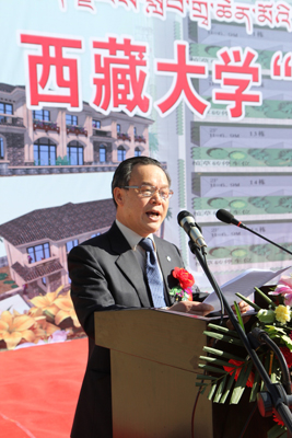 奠基典禮現(xiàn)場(chǎng) 西藏大學(xué)格桑群培校長(zhǎng)首先致歡迎辭。他代表西藏大學(xué)向北京大學(xué)多年來(lái)對(duì)西藏大學(xué)各項(xiàng)事業(yè)的大力支援以及中坤集團(tuán)給予藏大的慷慨惠助表示由衷的感謝和敬意。他指出,作為北京大學(xué)對(duì)口支援西藏大學(xué)的重點(diǎn)項(xiàng)目和中坤集團(tuán)情系藏大的愛(ài)心工程,北大中坤專(zhuān)家樓的建設(shè)意義已經(jīng)遠(yuǎn)遠(yuǎn)超出了項(xiàng)目本身,成為北大對(duì)口支援西藏大學(xué)的歷史見(jiàn)證和北大、藏大與中坤集團(tuán)三方團(tuán)結(jié)友誼的重要象征。西藏大學(xué)將嚴(yán)格按照捐贈(zèng)協(xié)議的要求,高質(zhì)量、高速度、高效益的把北大中坤專(zhuān)家樓建設(shè)成為讓各方滿意的精品工程,為促進(jìn)西藏大學(xué)基礎(chǔ)設(shè)施和學(xué)科建設(shè)作出積極貢獻(xiàn)。