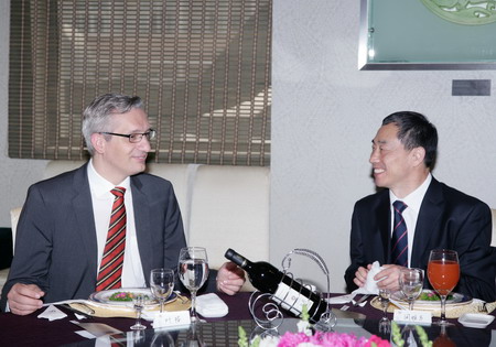 當(dāng)天中午,北京大學(xué)黨委書記閔維方在正大國際交流中心宴請了戴姆勒股份公司副總裁葉格先生一行。閔維方書記對戴姆勒股份公司長期以來對北大的人才培養(yǎng)、發(fā)展建設(shè)的鼎力支持表示衷心感謝。葉格副總裁表示,戴姆勒公司將繼續(xù)支持中國教育事業(yè)的發(fā)展,希望在未來能夠與北京大學(xué)有更為廣闊與深入的合作。
