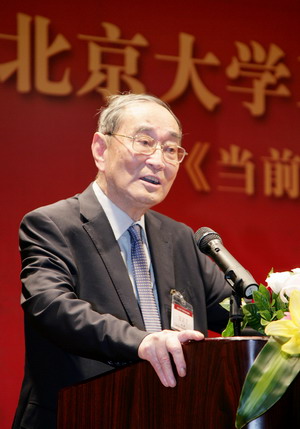 5月30日晚,北京大學(xué)113周年校慶答謝酒會暨《當(dāng)前中國的經(jīng)濟(jì)發(fā)展》主題沙龍在北大博雅國際會議中心中華廳舉行,著名經(jīng)濟(jì)學(xué)家、北京大學(xué)光華管理學(xué)院名譽院長厲以寧教授受邀出席并發(fā)表主題演講。北京大學(xué)黨委書記閔維方,校長周其鳳,副校長海聞、劉偉,研究生院院長、工學(xué)院院長陳十一,校長助理、教育基金會秘書長鄧婭,校長助理、黨辦校辦主任、學(xué)生工作部部長馬化祥,教育基金會副理事長廖陶琴,常務(wù)理事黃怒波,理事傅軍、王仰麟、張旋龍、湯世生,北京大學(xué)前副校長、西南聯(lián)大校友會會長沈克琦以及學(xué)校有關(guān)院系部門的負(fù)責(zé)人一同出席酒會,與各界友人共240余人齊聚一堂,暢敘情誼。