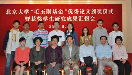 “毛玉剛基金”優(yōu)秀論文獲獎(jiǎng)學(xué)生作報(bào)告 5月20日下午,“北京大學(xué)毛玉剛大學(xué)生科學(xué)研究基金”捐助者之一鐘賜賢教授及其夫人夏曉巒博士出席了第五屆北京大學(xué)“毛玉剛基金”優(yōu)秀論文頒獎(jiǎng)儀式暨獲獎(jiǎng)學(xué)生研究成果匯報(bào)會(huì),與2010年“毛玉剛基金”優(yōu)秀論文獲獎(jiǎng)學(xué)生座談并聽取了學(xué)生的優(yōu)秀論文匯報(bào)。教務(wù)部部長(zhǎng)方新貴、教育基金會(huì)副秘書長(zhǎng)許諍出席活動(dòng)。