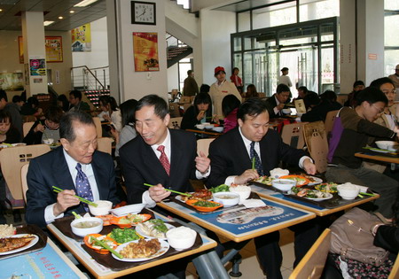 隨后,郭鶴年先生一行在閔維方書記等校領(lǐng)導(dǎo)陪同下,和師生一起到他捐資建設(shè)的農(nóng)園食堂共進(jìn)午餐。