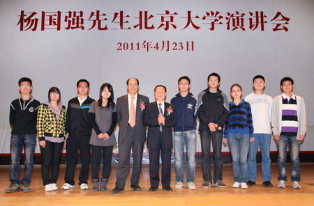 楊國(guó)強(qiáng)先生與學(xué)生代表合影