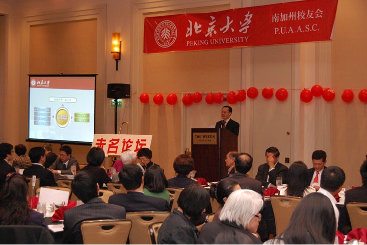 2010年4月4日,北京大學未名論壇(洛杉磯?2010)暨慈善晚宴在美國帕薩迪納市威斯汀酒店(Pasadena Westin Hotel)舉行。周其鳳校長率北大代表團與南加州地區(qū)的北大校友、各界僑領和朋友一百五十余人共同出席。