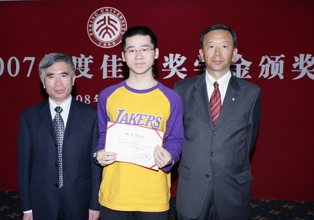 5月13日下午,北京大學(xué)2007年度佳能獎學(xué)金頒獎儀式在北大英杰交流中心舉行。佳能獎學(xué)基金于1998年設(shè)立,佳能公司(Canon Co)先后捐資5000萬日元作為獎學(xué)基金的本金,每年利用基金受益發(fā)放獎學(xué)金。目前基金本金達(dá)到250余萬元人民幣,十年來累積發(fā)放獎學(xué)金155萬余元,獲獎學(xué)生589人次。2007年度,佳能獎學(xué)金(Canon Scholarship)獎勵金額達(dá)116,000元人民幣,資助本科一年級學(xué)生29人,每人4000元。