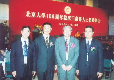 2004年4月28日晚上,“北京大學(xué)106周年校慶工商界人士招待酒會(huì)”在北京大學(xué)英杰交流中心陽(yáng)光大廳隆重舉行。此次校慶酒會(huì)以“增進(jìn)了解,促進(jìn)友誼”為宗旨,其主要目的是向社會(huì)各界匯報(bào)北大近年在教學(xué)科研上取得的成績(jī),答謝長(zhǎng)期以來(lái)社會(huì)各界有識(shí)之士對(duì)北大發(fā)展的關(guān)注和支持,增進(jìn)彼此了解,促進(jìn)合作互利。