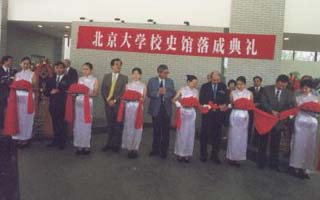 2001年9月1日上午,備受矚目的北京大學(xué)校史館落成典禮在校史館大廳隆重舉行。校史館自99年底開工建設(shè),至今年年初基本竣工。所有建設(shè)資金均來自日本企業(yè)的捐贈。百年校慶前夕,日本企業(yè)界發(fā)起成立了“北京大學(xué)百年校慶籌資發(fā)起人會”,先后有六十余家日本企業(yè)參與其中,并在百年校慶期間向我校校史館捐資2億7千萬日圓的建設(shè)經(jīng)費。目前,校史館的建設(shè)和周邊環(huán)境的整治工作已基本完成,布展工作也在緊張地進行之中。國家主席江澤民為我校校史館題寫了館名。