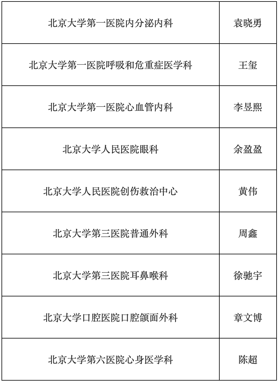 附:首屆“北京大學(xué)青年醫(yī)師獎(jiǎng)” 獲獎(jiǎng)名單