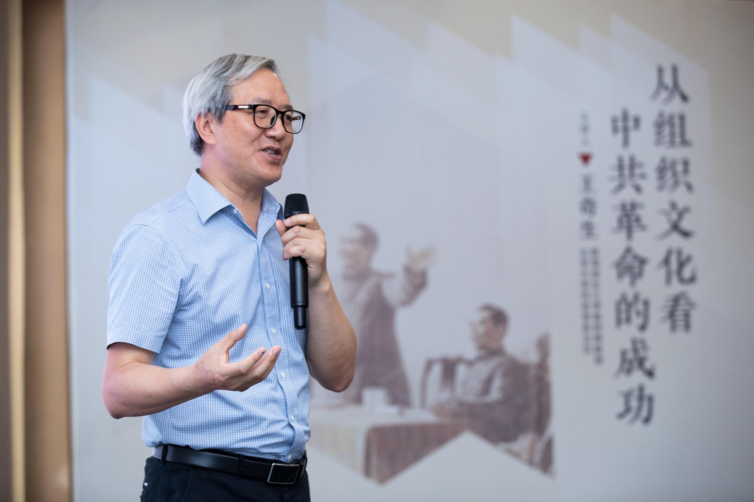 王奇生教授以生動(dòng)翔實(shí)的史實(shí)、幽默風(fēng)趣的語(yǔ)言,帶領(lǐng)全場(chǎng)來(lái)賓重返了中國(guó)共產(chǎn)黨建黨早期的崢嶸歲月,從組織文化的視角揭示了百年大黨得以成功的秘訣。他將中國(guó)共產(chǎn)黨的早期創(chuàng)建歷程置于當(dāng)時(shí)國(guó)際共產(chǎn)主義運(yùn)動(dòng)的時(shí)代背景下,深入分析了中國(guó)共產(chǎn)黨建黨初期、抗日戰(zhàn)爭(zhēng)、解放戰(zhàn)爭(zhēng)時(shí)期得以迅速發(fā)展壯大的內(nèi)因及外因,以及在此過(guò)程中所顯示出的組織優(yōu)勢(shì)。他認(rèn)為,中國(guó)共產(chǎn)黨最終走向勝利的一個(gè)關(guān)鍵因素在于貫穿始終的優(yōu)秀的思想政治工作以及尊重人格的組織文化。最后,他強(qiáng)調(diào),新時(shí)期我們對(duì)于黨史、國(guó)史的學(xué)習(xí)極具重要性,歷史在探尋中被還原真相,也在代代相傳中得以永存。